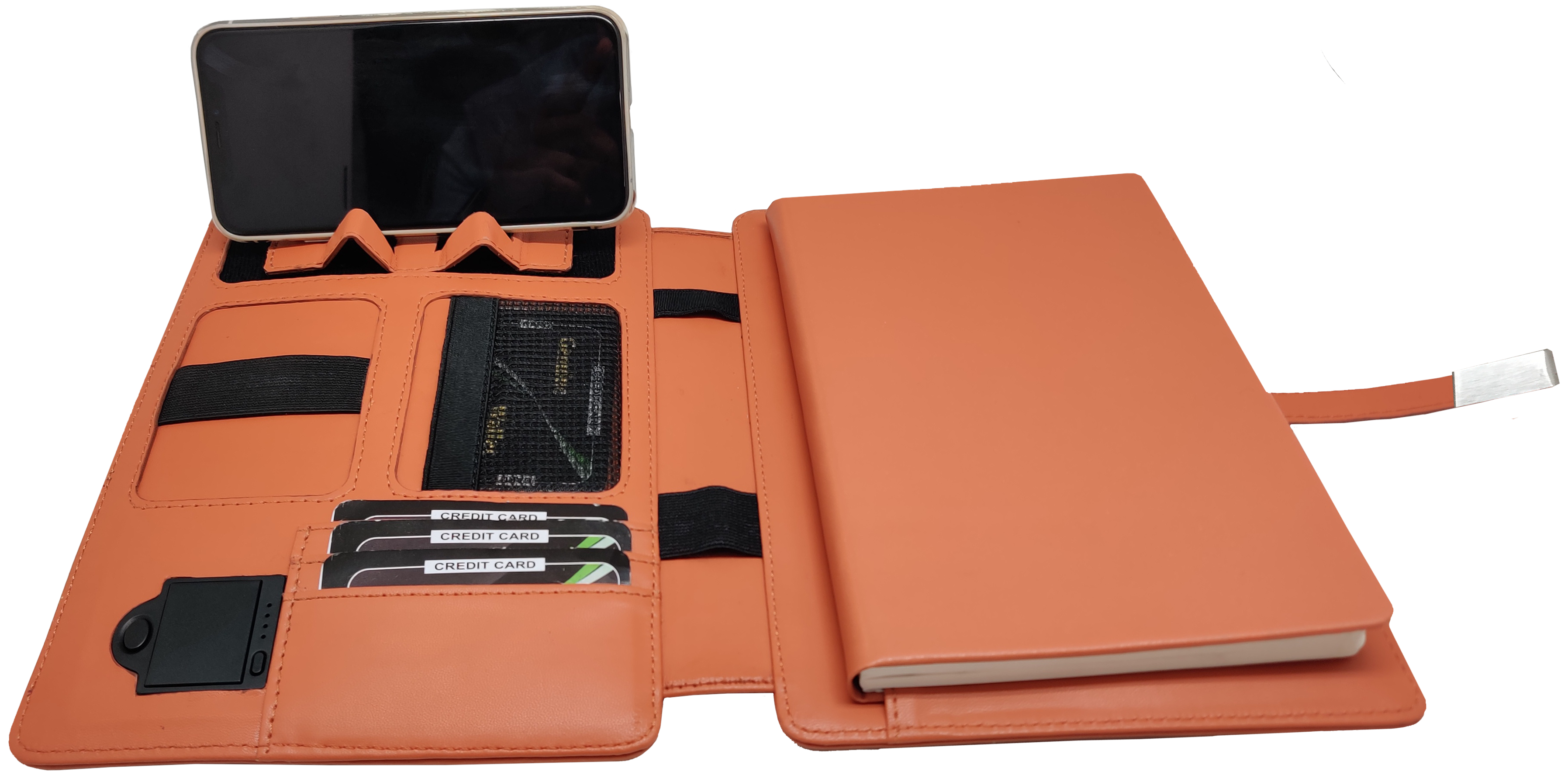 Popup Diary Power bank has space to credit card holder, visiting card holder and mobile stand. Min. Order Quantity: 100